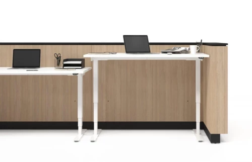 La banque d’accueil ICE structure l’espace de réception avec élégance et fonctionnalité. Conçue pour les environnements professionnels contemporains, elle s’adapte aussi bien aux bureaux assis-debout standard qu’aux bureaux à hauteur fixe. Son design sobre et maîtrisé permet de créer un premier point de contact accueillant, organisé et professionnel.