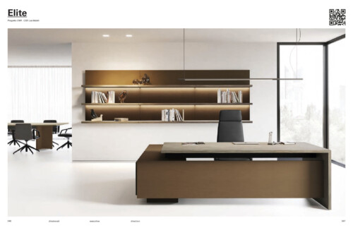 La gamme Elite incarne une vision exigeante et raffinée du mobilier de direction. Pensée pour les espaces professionnels à forte valeur représentative, elle associe élégance formelle, précision technique et fonctionnalité, créant des environnements de travail à la fois prestigieux et performants.