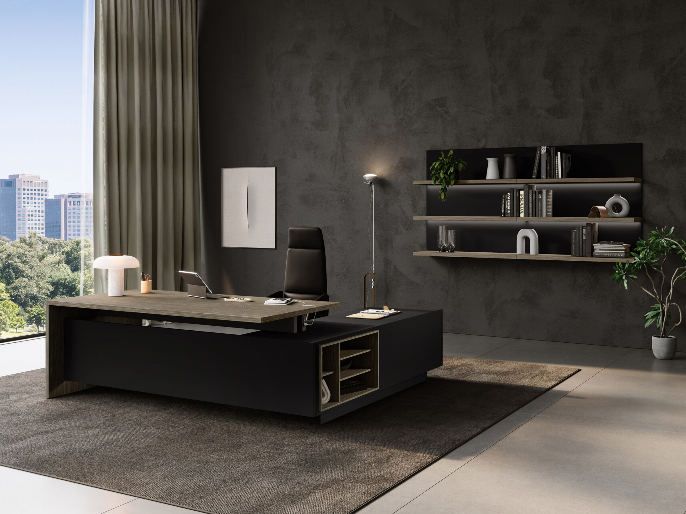 La gamme Elite incarne une vision exigeante et raffinée du mobilier de direction. Pensée pour les espaces professionnels à forte valeur représentative, elle associe élégance formelle, précision technique et fonctionnalité, créant des environnements de travail à la fois prestigieux et performants.